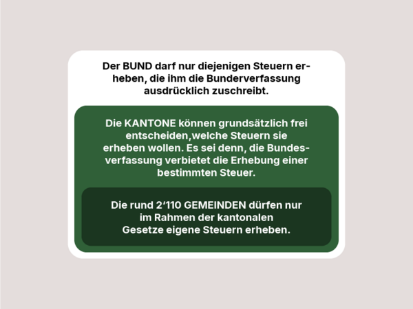 - Durch die Bundesverfassung wird klar geregelt, welche Steuern der Bund erheben darf.